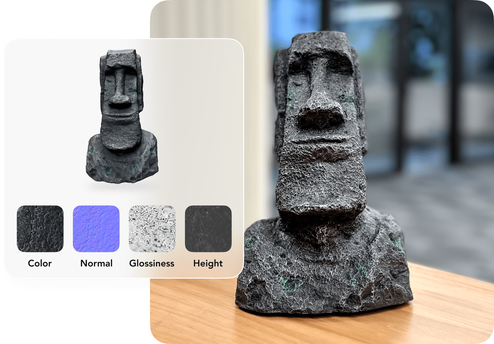 Physically based rendering (PBR) is a rendering method that is particularly effective for generating realism. They provide a more realistic and accurate representation of surfaces by incorporating details like roughness, metallic properties, and ambient occlusion. This makes objects appear more natural across different lighting conditions. KIRI Engine allows users (Pro) to export production-ready PBR texture maps along with the 3D scans.