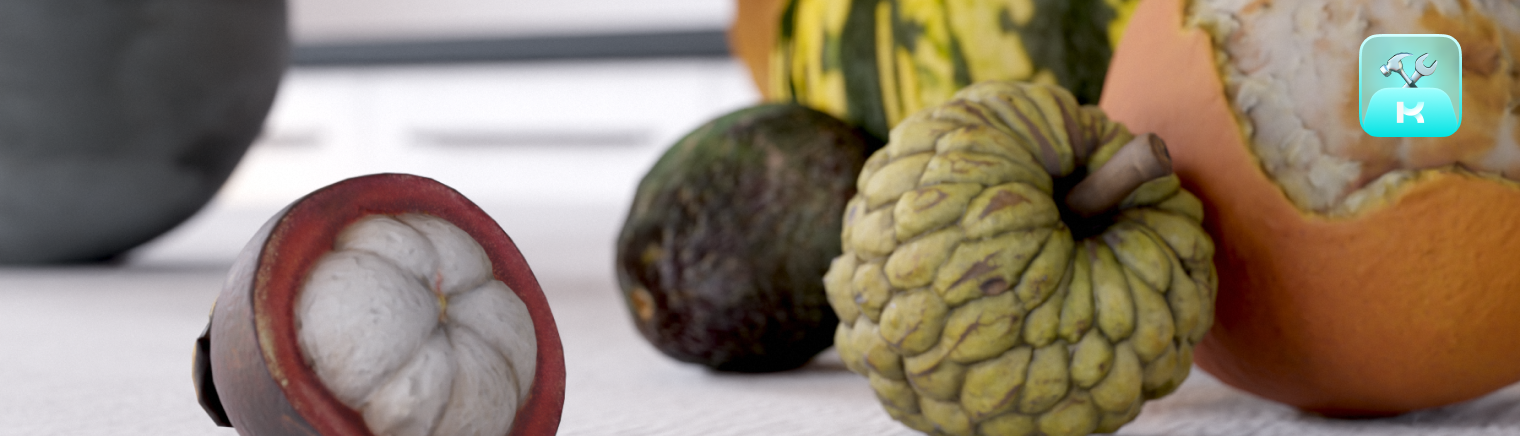 Due to the crowd sourced nature of these scans, you will find plenty of your common apples or bananas, but also models not easily found in other sites or packs, such as mangosteen or dragon fruit.