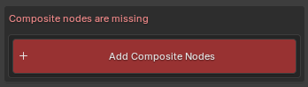 Before the compositing nodes are added a warning and the button Add Composite Nodes will show.