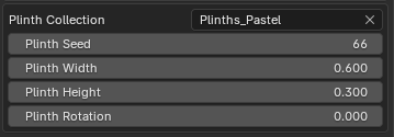 If enabled, you can select the plinth source collection, adjust the plinth seed, height, width and rotation with their corresponding values below.