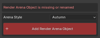 If the Render Arena Object is not found in the scene or has been renamed you will be shown options to pick a style and add the object with Append Render Arena Object.