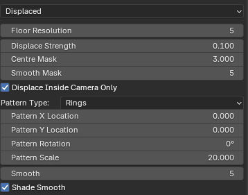 Setting the Floor Type – to either simple, displaced or tiled – will change which options are shown