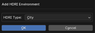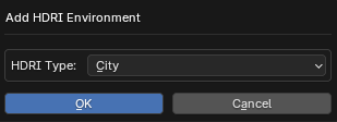 Pressing this will bring up a dialogue to choose which HDRI you would like to use. These HDRI's are the same HDRI image found in the Blender Material Preview.