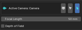 From the Active Camera menu you can adjust the Focal Length, depth of field and quickly select the Active Camera.