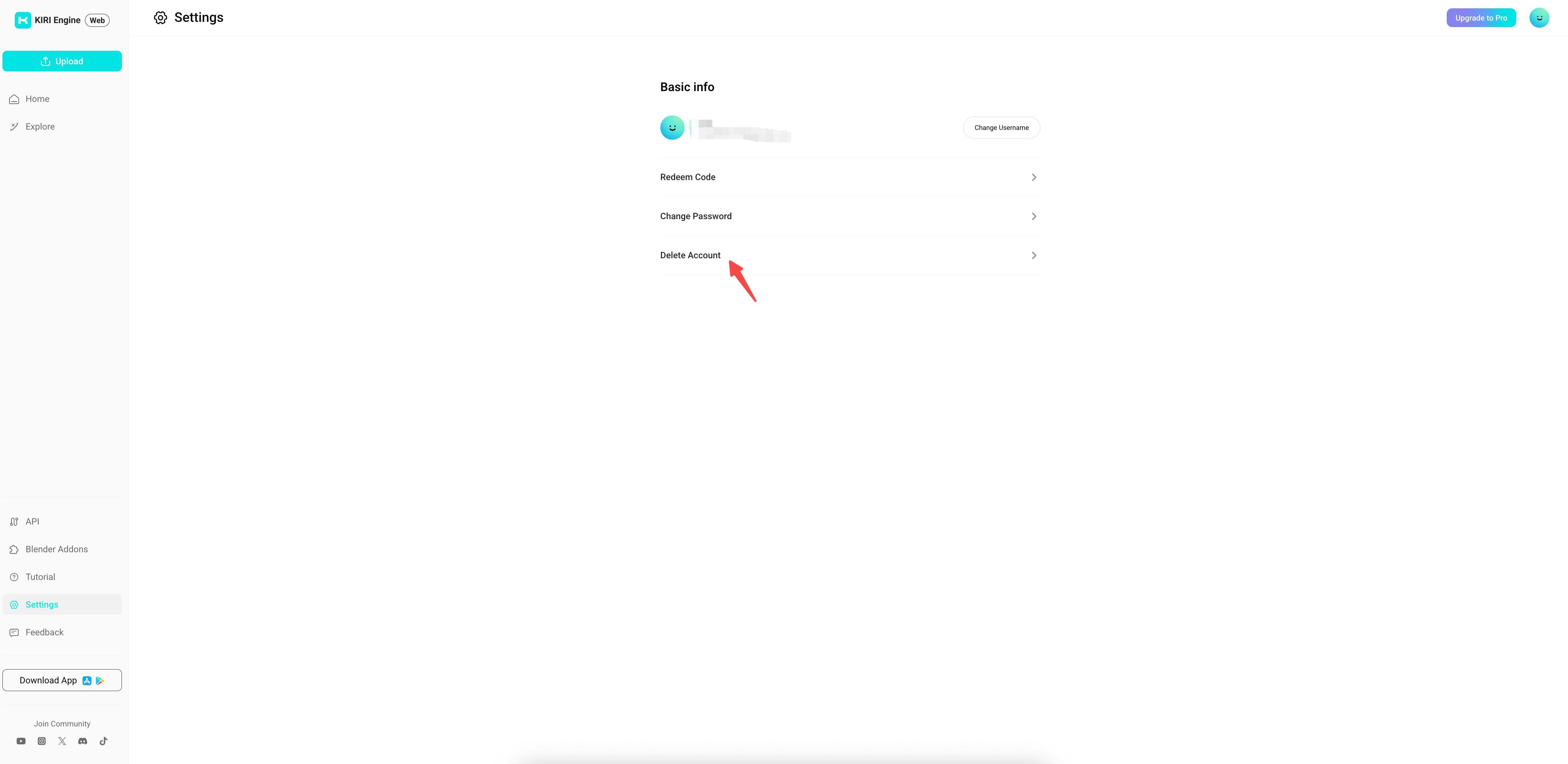 Cliquez sur « Delete Account » pour accéder à la page de suppression du compte.